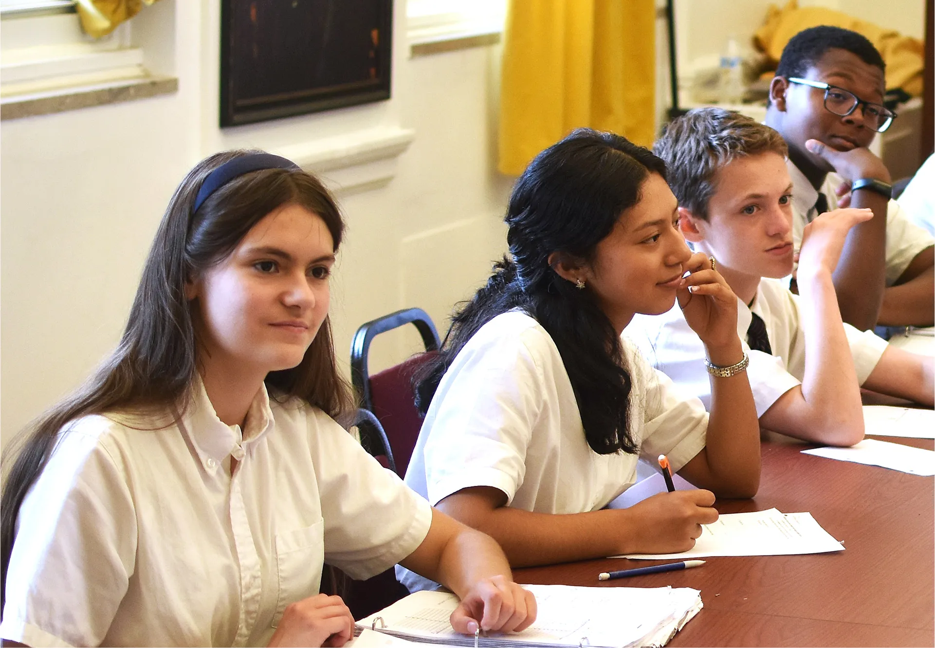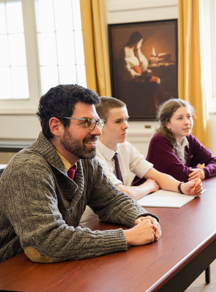 Courses are all taught using the seminar method, where the goal is not simply to “deliver” curriculum but cultivate deep habits of thinking and knowledge in the students. In the seminar, students discuss texts, works of art, historical events, music, and scientific experiments under the careful guidance of their teachers in order to come to know and deepen their understanding in communion with their friends.
