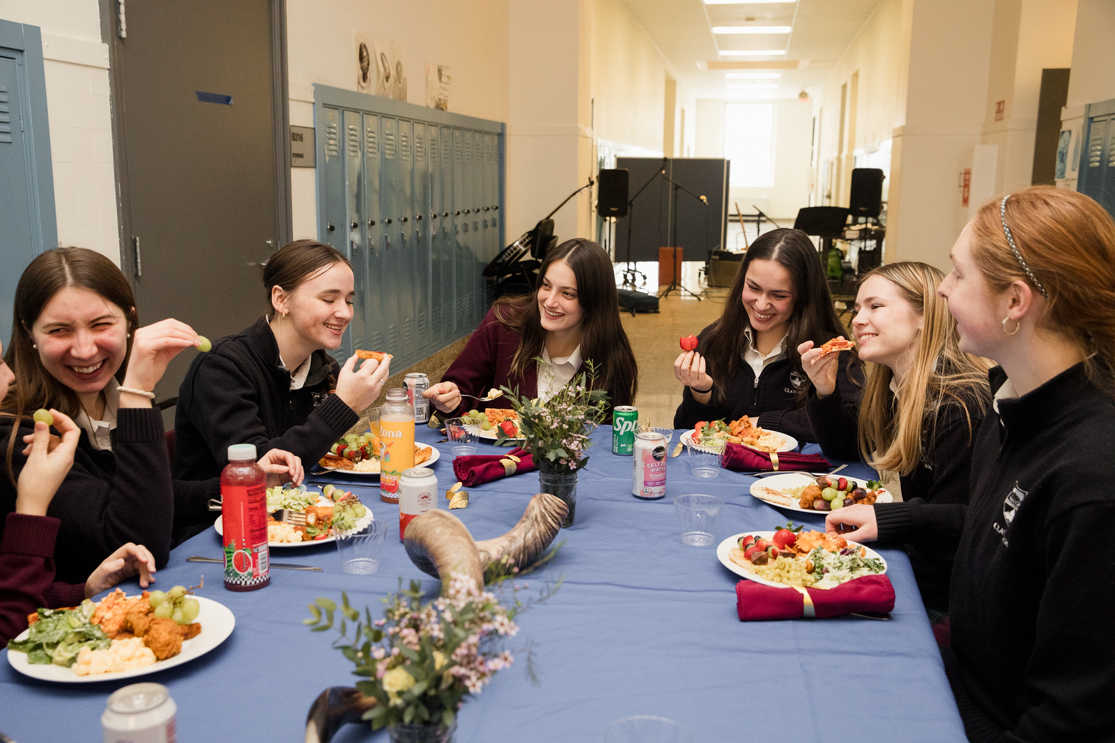 On top of these commitments, our school calendar is driven by the liturgical cycle. For major feast days, the students, faculty, and staff all engage in true feasting with games, Mass, music, performances, and plays. We want our students to not only read about the beauty of a Catholic culture, but to live it in joy! Feasting has always been a significant part of that culture and is a necessary part of living the faith.